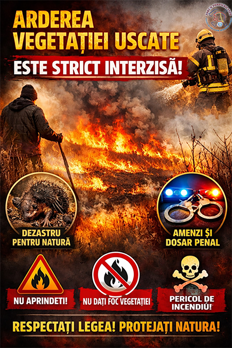 Persoanele fizice şi juridice ce desfăşoară acţiuni de ardere a miriştilor, stufului şi a vegetaţiei ierboase, gunoaielor, deşeurilor şi a altor materiale combustibile, sunt obligate să respecte prevederile reglementărilor în domeniu, punând accent pe următorul set de măsuri de prevenire a incendiilor specifice, care pot fi completate şi cu alte reguli de prevenire a incendiilor în funcţie de condiţiile meteo şi specificitatea zonei astfel: